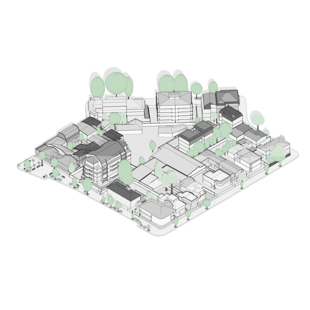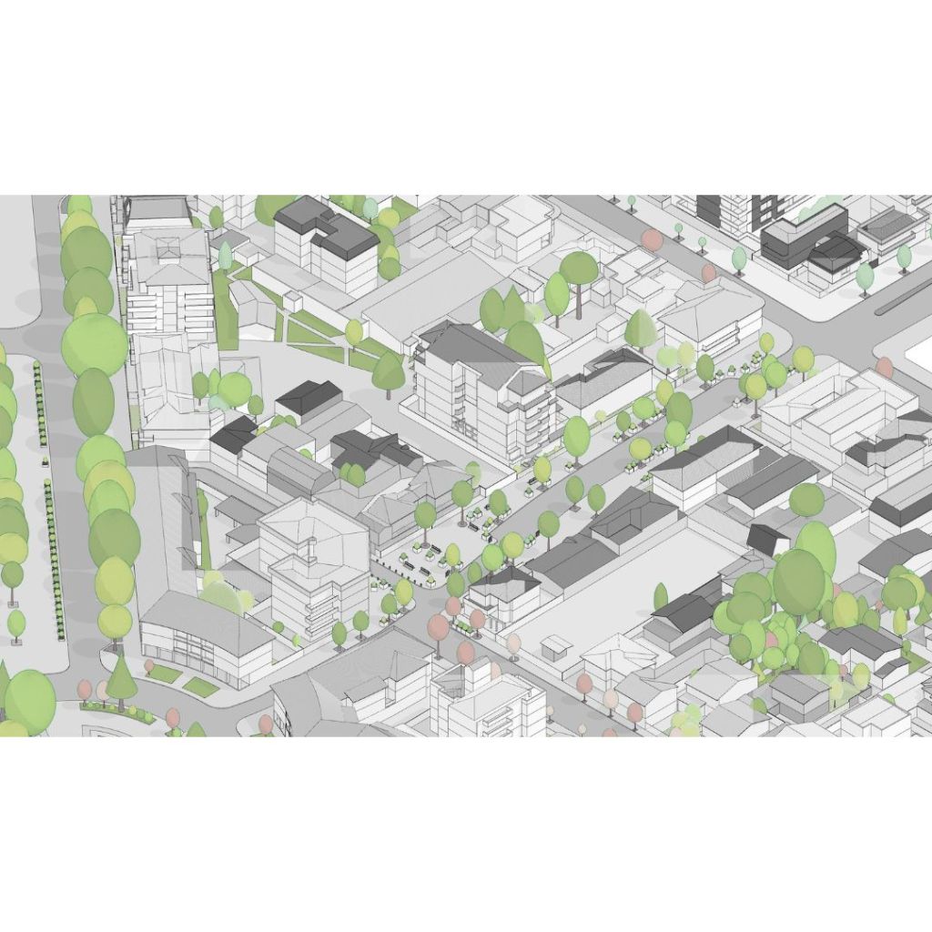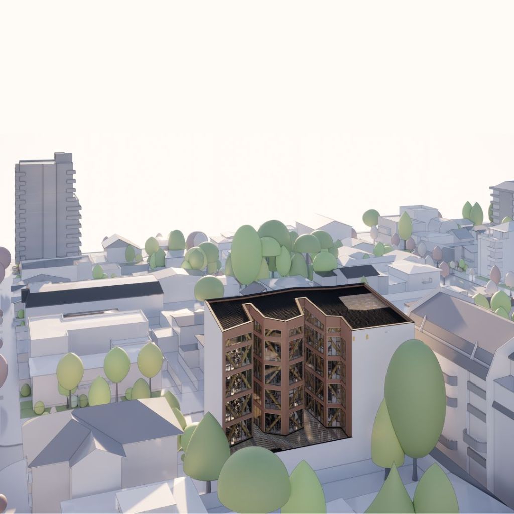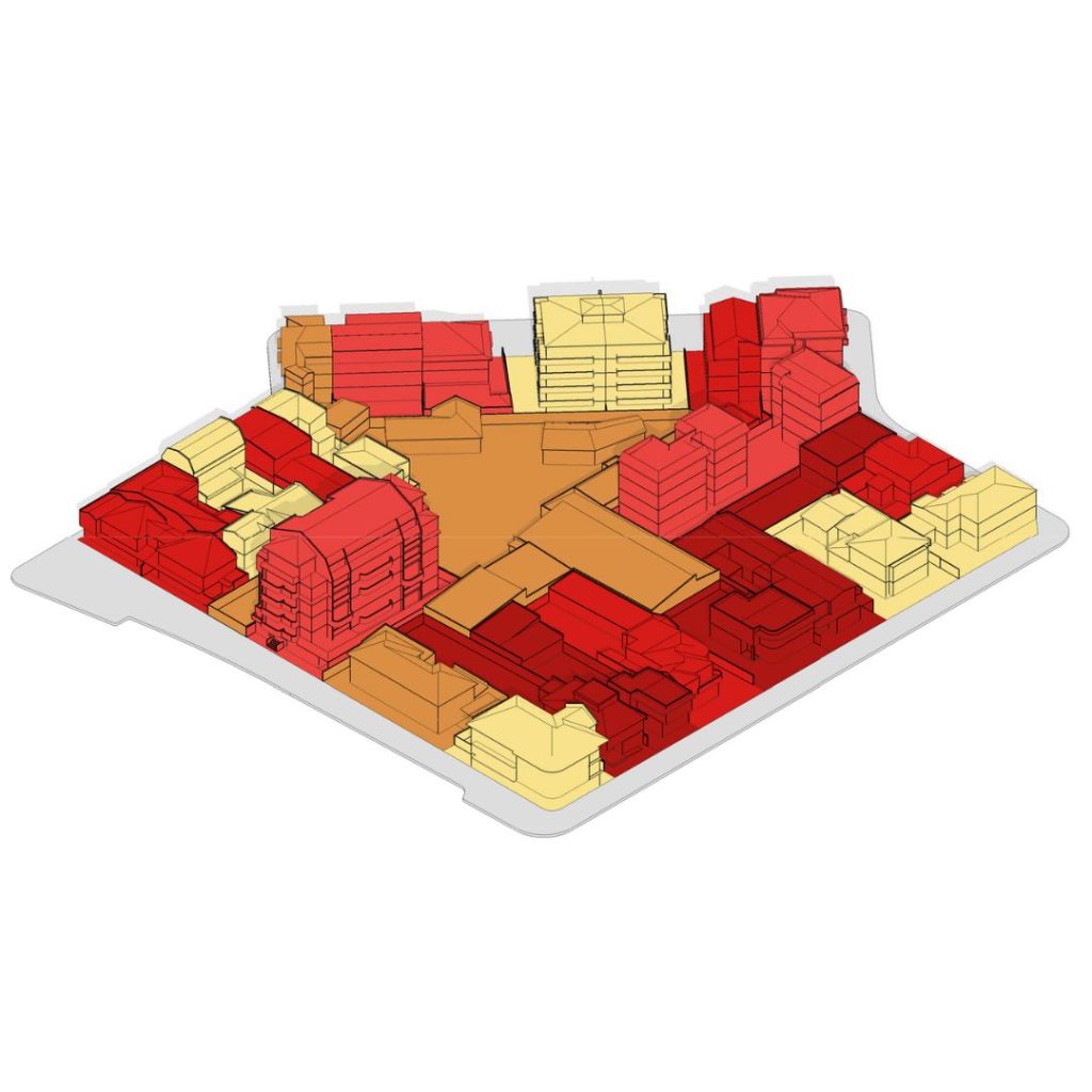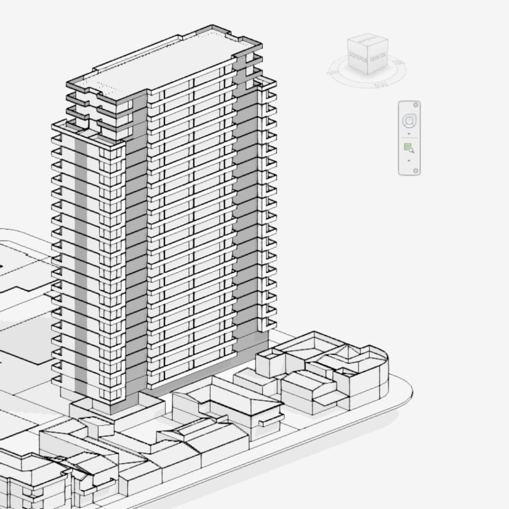 Para ello modele detalladamente el contexto con los edificios cercanos que generarían los mayores conos de sombras era lo principal, pero un según uso era generar las piezas para cortar una maqueta en cartón en máquinas CNC. (2×1) El contexto es en la ciudad de Concepción, Chile, en los análisis urbanos posteriores se puede ver gran parte de la comuna.