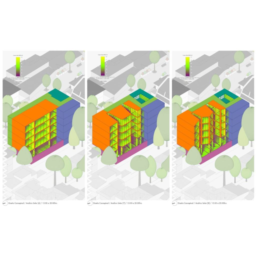 Este estudio de asoleamiento fue realizado durante las fases de diseño conceptual y de anteproyecto con el fin de tomar decisiones tempranas para optimizar el uso de la iluminación natural en un contexto urbano, todo enfocado en mi proyecto de finalización de carrera de arquitectura. Acá yo tenía unos años trabajando en modelación y coordinación BIM así que centré estas metodologías al diseño del proyecto como una herramienta más de desarrollo, aunque no fuera requisito de la entrega del título, para mí era más eficiente usar BIM.