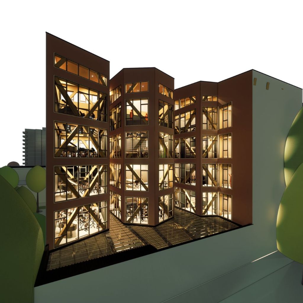 En las imágenes que he dejado se ve el proceso, desde el modelado volumétrico para las primeras decisiones de diseño hasta evolucionar a un modelado detallado por razones como fabricación de la maqueta física o una visualización más urbana.