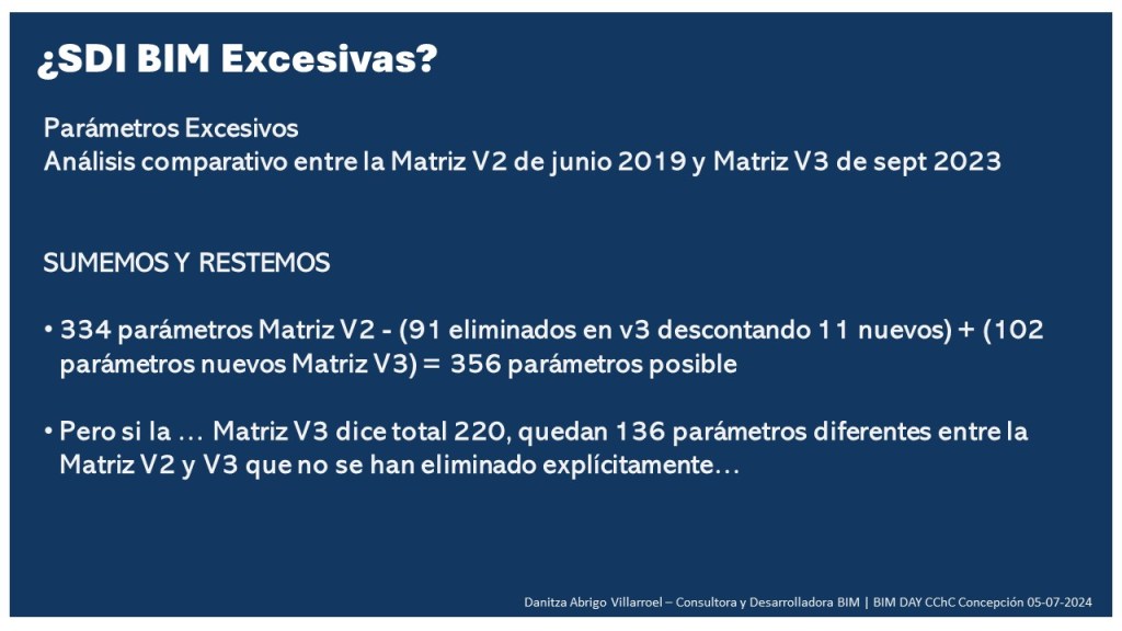Ahora yo hice mis cuentas, de 334 de la V2, pasando a la V3 se eliminaron realmente 80 parámetros y al mismo tiempo agregaron otros 102, nos quedaron 356 parámetros que pueden llegar a solicitar las SDI en Chile… y tenemos algunos mandantes pensando que es la mejor jugada pero al final esto no asegura realmente un buen producto.